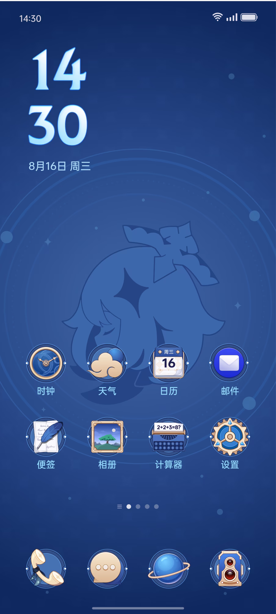 Мы отрисовали каждый элемент дизайна ОС в стиле Paimon от живых обоев до значков приложений и анимации зарядки. Каждый элемент будет напоминать о Paimon.